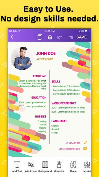 Pembuat CV Pembuat Resume membutuhkan iOS 12.1.2 dan yang lebih baru. Versi program saat ini adalah 1.30, dan Anda hanya bisa mendapatkannya dalam bahasa Inggris.